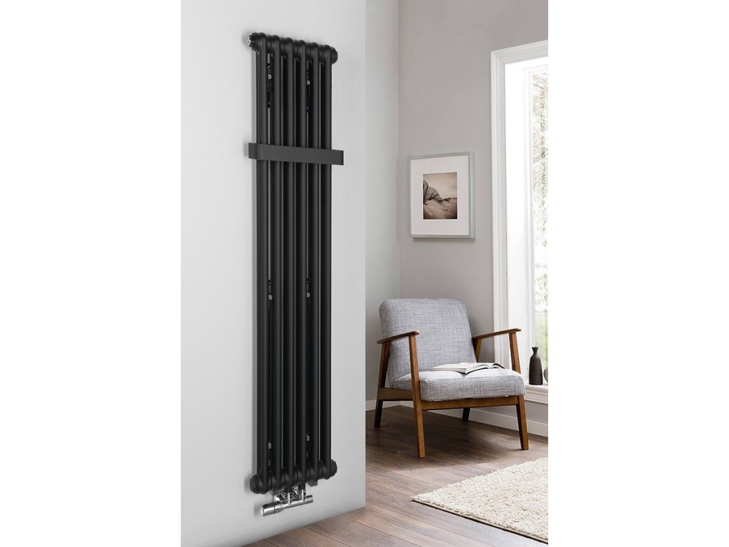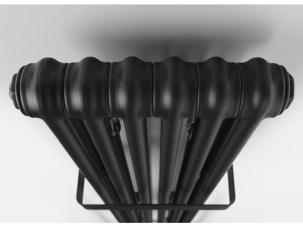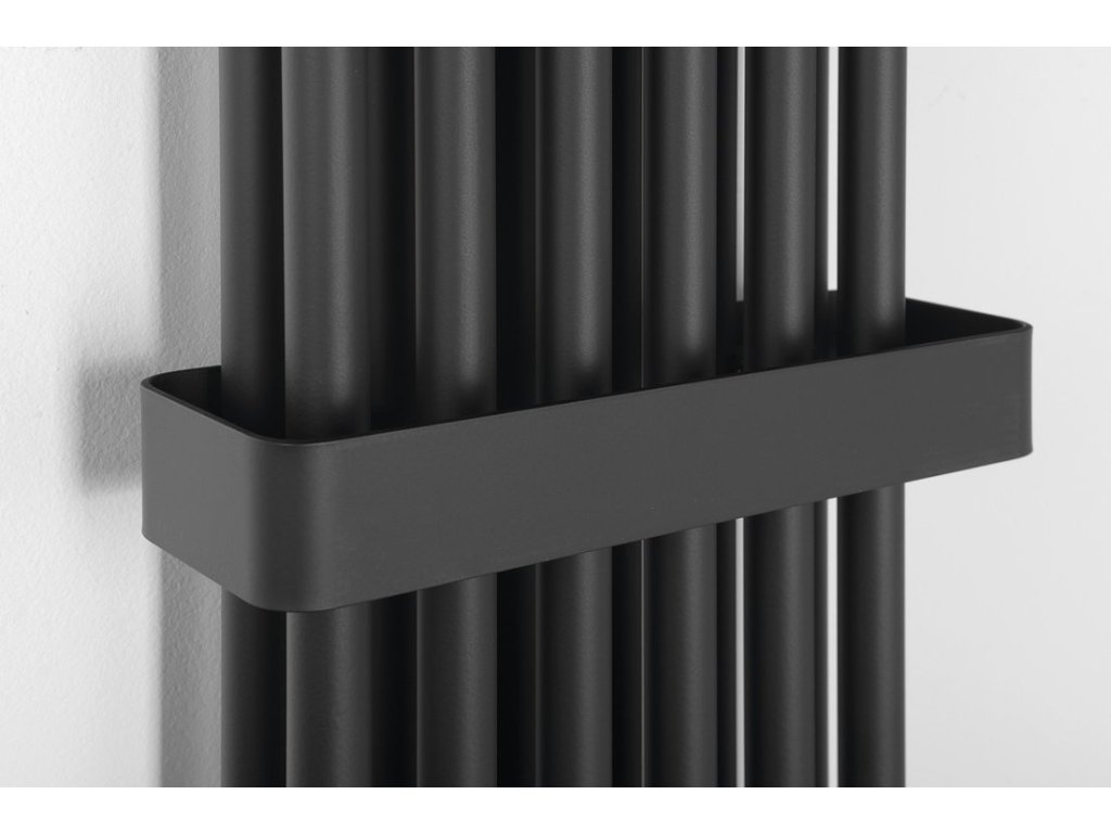 Trubkový radiátor FEDE ve dvou velikostech o šesti anebo deseti segmentech a barevných variantách bílá mat a černá mat lze doplnit o praktické madlo.