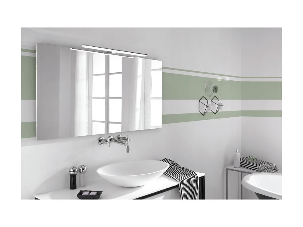Moderní svítidlo bez LED driveru, připojuje se přímo na 230 V pomocí spojovacího boxu s ochranou IP44. Standardně se dodává s držákem za rám zrcadla nebo na zeď. Součástí balení je i univerzální držák, pomocí kterého lze instalovat svítidlo na galerku nebo přímo na zrcadlo (max. tloušťka zrcadla je 6 mm).
