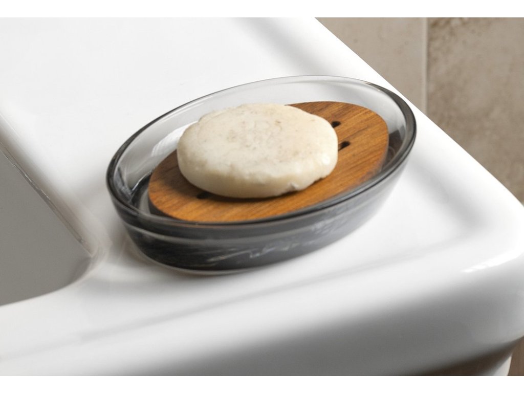 FIGO mýdlenka na postavení, kouřové sklo/dřevo