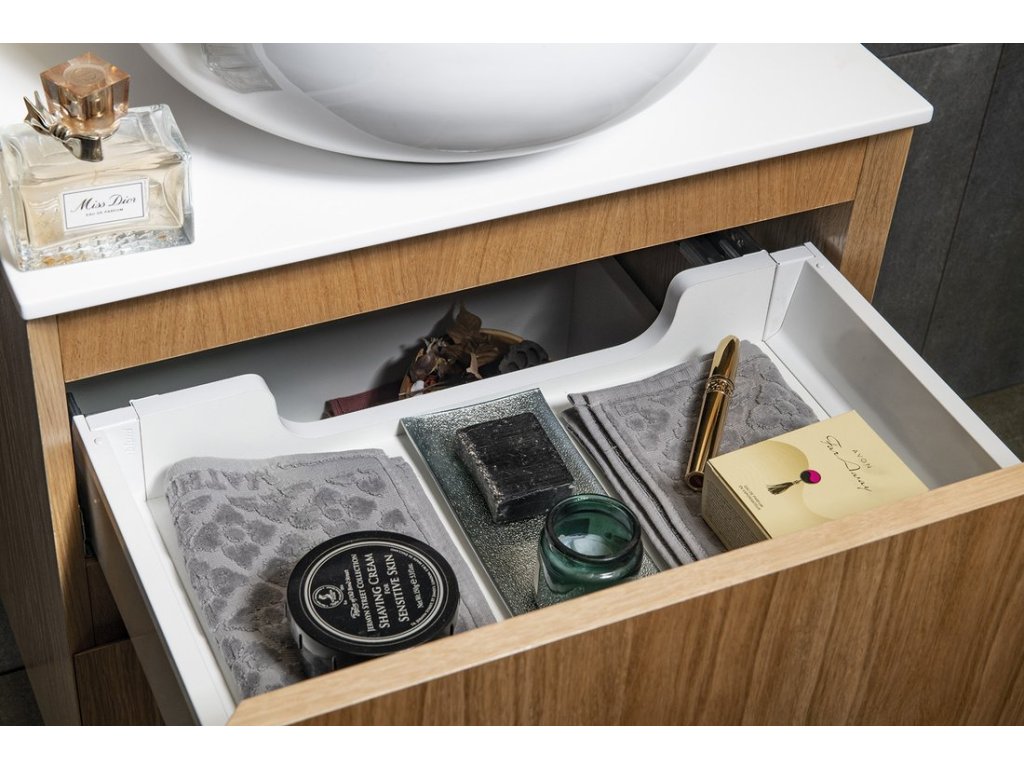 Pro umyvadlové skříňky lze vybírat mezi třemi druhy umyvadel: keramickým umyvadlem KARE, umyvadlem z litého mramoru GODIVA a betonovým umyvadlem QUADRADO. Mimoto lze umyvadlové skříňky doplnit deskou z umělého kamene (rockstone) a doplnit umyvadlem na desku.