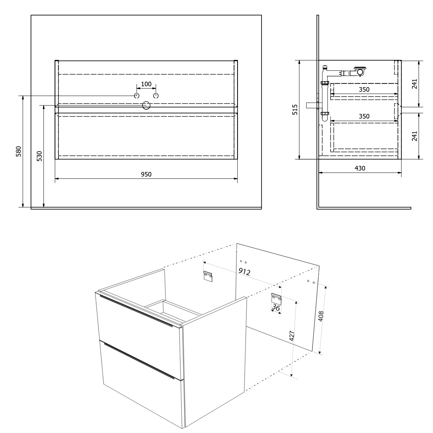 - Horní zásuvky bez výřezu pro sifon.