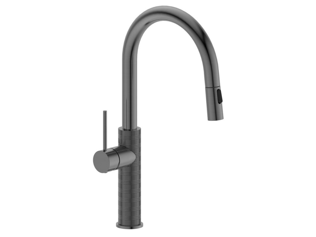 FLAWO stojánková dřezová baterie s výsuvnou sprškou, gun metal