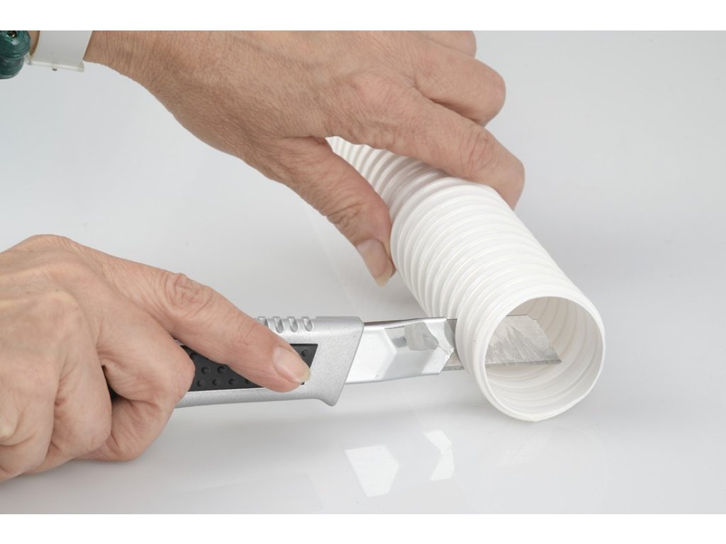Flexibilní propojovací trubka je vyrobena z pevného plastu. Seříznutím lze zkrátit na požadovanou délku. Díky hladké vnitřní stěně nedochází k usazování nečistot.