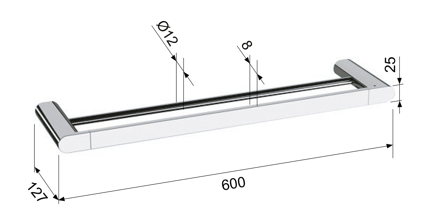 FLORI dvojitý držák ručníků 600mm, černá mat