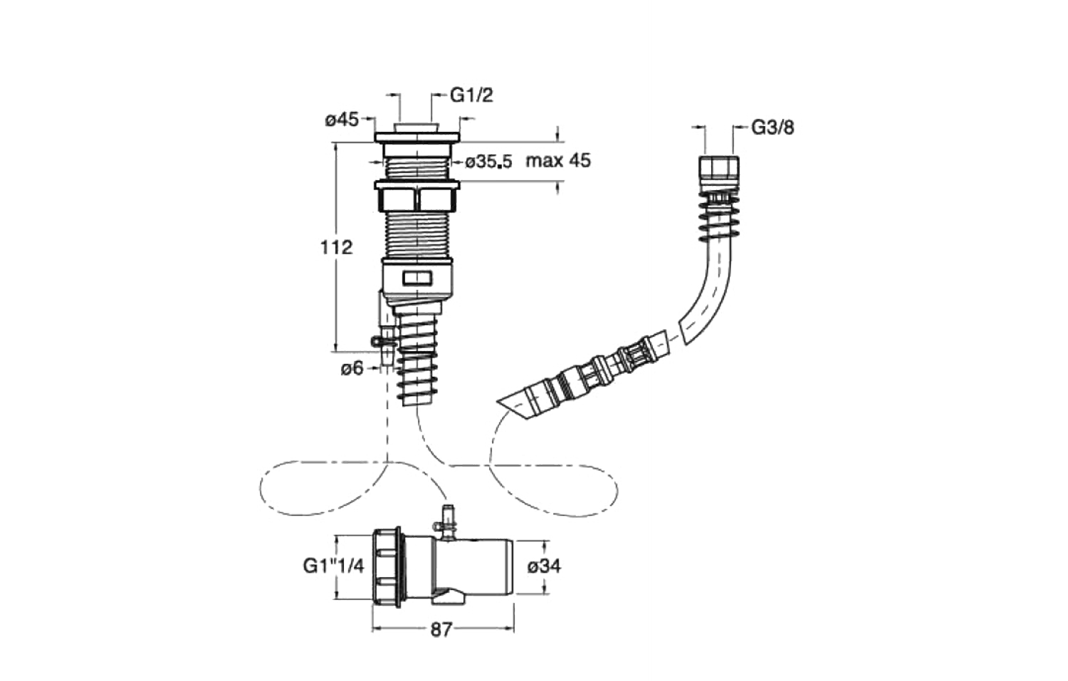 FOLLOW ME sprchová průchodka s odvodněním na okraj vany vč. hadice a drenážního kusu, kulatá, chrom