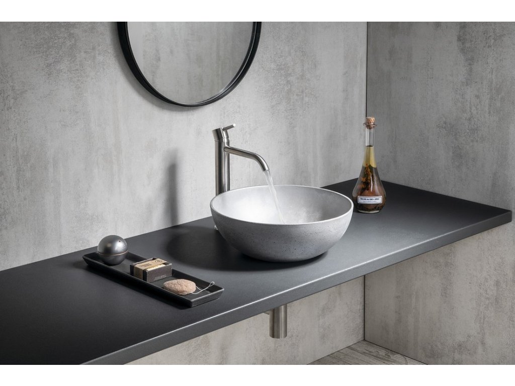 FORMIGO betonové umyvadlo na desku, Ø 39cm, stříbrná mat