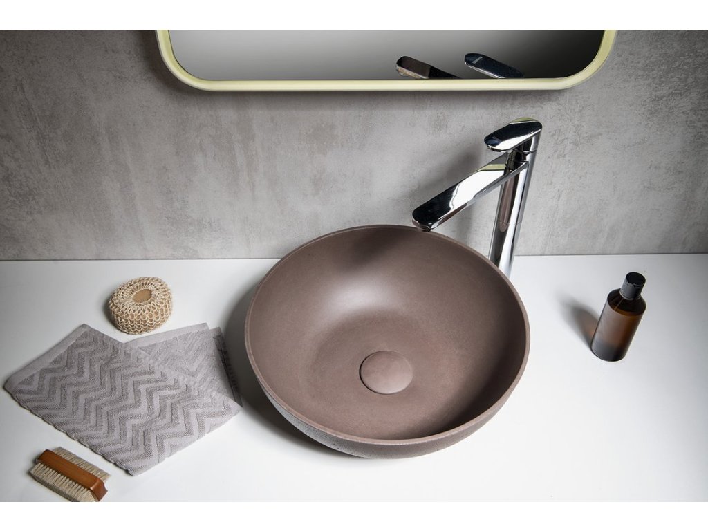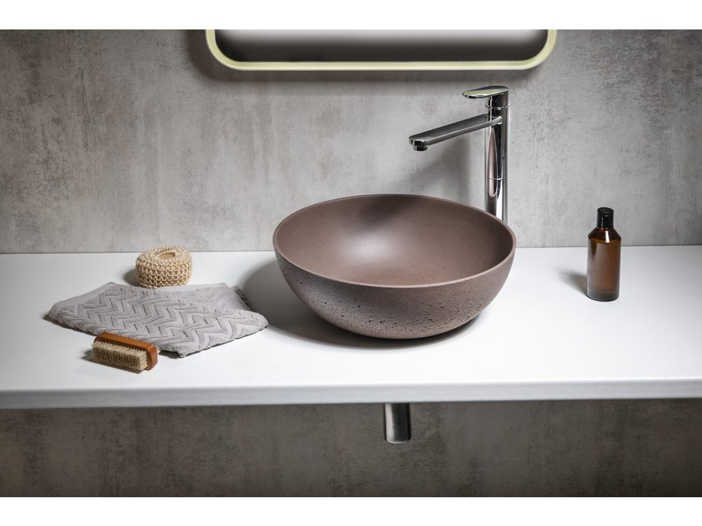 FORMIGO betonové umyvadlo na desku, Ø 39cm, tmavě hnědá mat