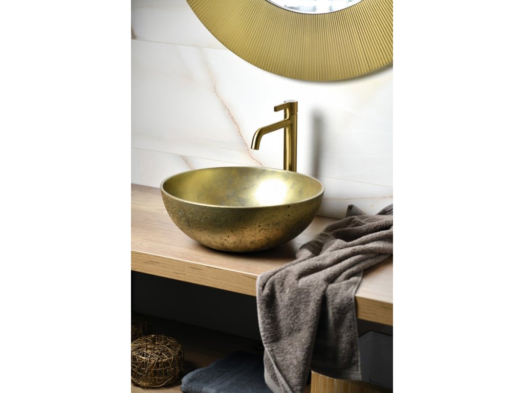 FORMIGO betonové umyvadlo na desku, Ø 39cm, zlato mat