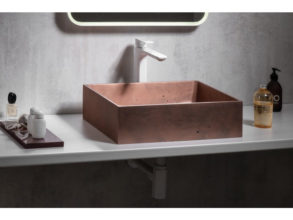 FORMIGO betonové umyvadlo na desku, 47,5x36,5cm, měď mat