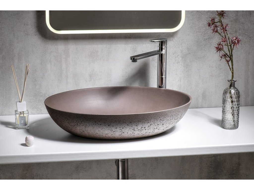 FORMIGO betonové umyvadlo na desku, 60x40cm, tmavě hnědá mat