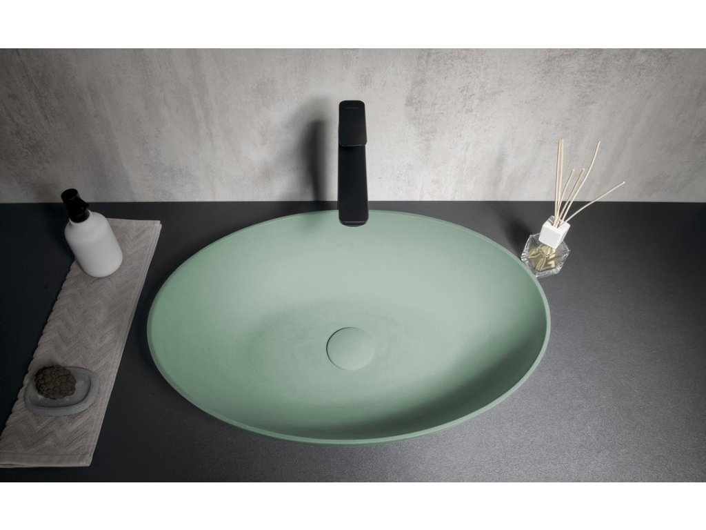 FORMIGO betonové umyvadlo na desku, 60x40cm, zelená mat