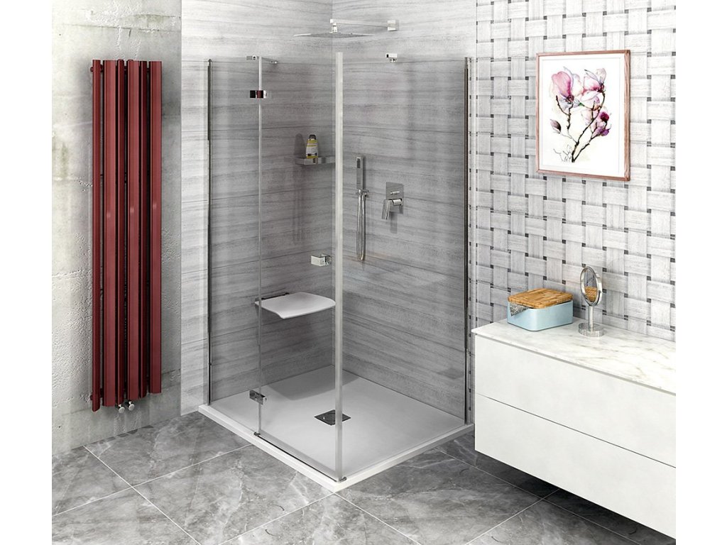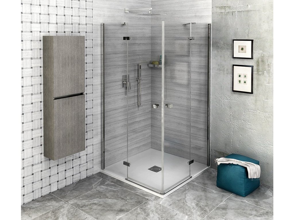 Bezrámové pantové zástěny FORTIS v moderním hranatém designu. Minimalistické pochromované panty v nekompromisním hranatém designu, zevnitř zapuštěné pro snadné čištění a se zvedací funkcí pro pohodlné otevírání. Bezpečnostní čiré sklo v tloušťce 8 mm je ošetřené povrchovou úpravou ANTIDROP pro snadné čištění. Výška 2000 mm. Hranaté pochromované madlo ve stejném minimalistickém designu jako panty.
