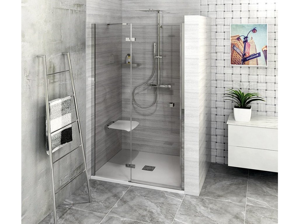 Bezrámové pantové zástěny FORTIS v moderním hranatém designu. Minimalistické pochromované panty v nekompromisním hranatém designu, zevnitř zapuštěné pro snadné čištění a se zvedací funkcí pro pohodlné otevírání. Bezpečnostní čiré sklo v tloušťce 8 mm je ošetřené povrchovou úpravou ANTIDROP pro snadné čištění. Výška 2000 mm. Hranaté pochromované madlo ve stejném minimalistickém designu jako panty.