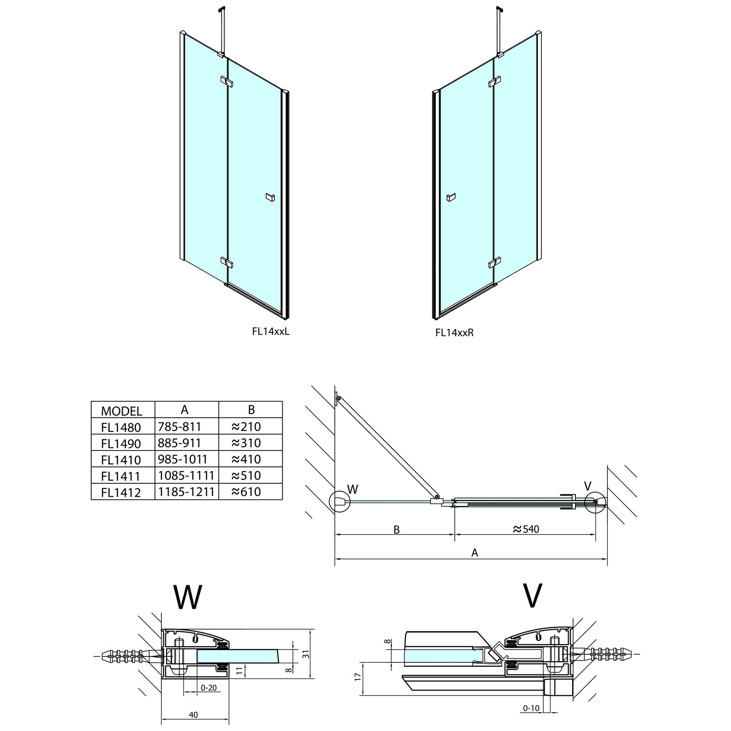 Bezrámové pantové zástěny FORTIS v moderním hranatém designu. Minimalistické pochromované panty v nekompromisním hranatém designu, zevnitř zapuštěné pro snadné čištění a se zvedací funkcí pro pohodlné otevírání. Bezpečnostní čiré sklo v tloušťce 8 mm je ošetřené povrchovou úpravou ANTIDROP pro snadné čištění. Výška 2000 mm. Hranaté pochromované madlo ve stejném minimalistickém designu jako panty.