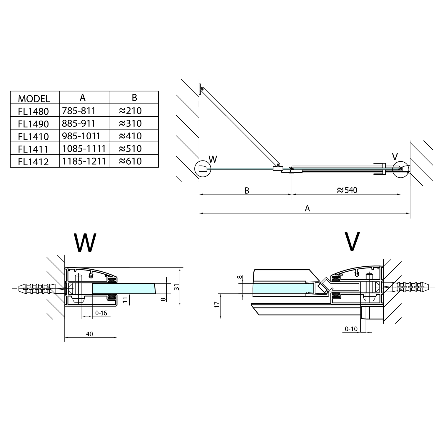 - Snadná montáž pomocí nastavitelného stěnového profilu 0-16 mm
