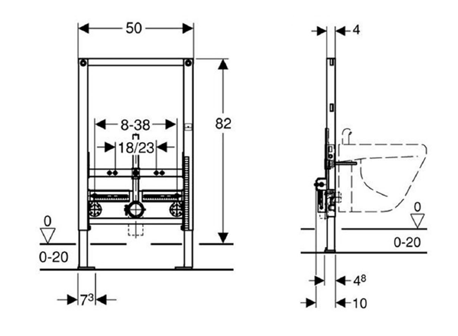 - Pro zabudování do systémové stěny Duofix na celou výšku místnosti