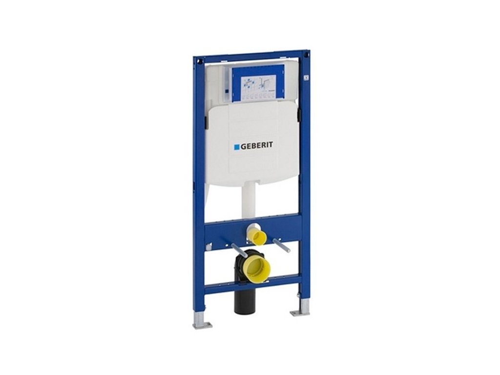 Předstěnový splachovací systém Geberit DUOFIX 111.300.00.5 s možností montáže do sádrokartonových příček, do lehkých sádrokartonových příček nebo k instalaci před masivní stěnu. Montáž je za použití čtyř upevňovacích bodů. Zaručená nosnost je 400 kg.