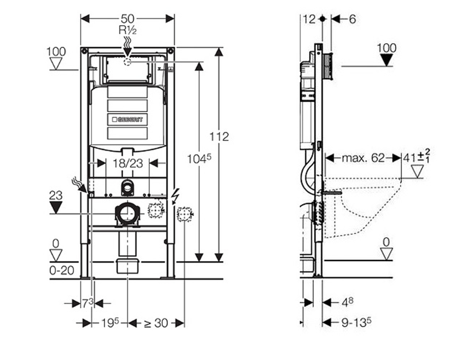 - Pro montáž závěsného WC se vzdáleností upevnění 18 cm nebo 23 cm