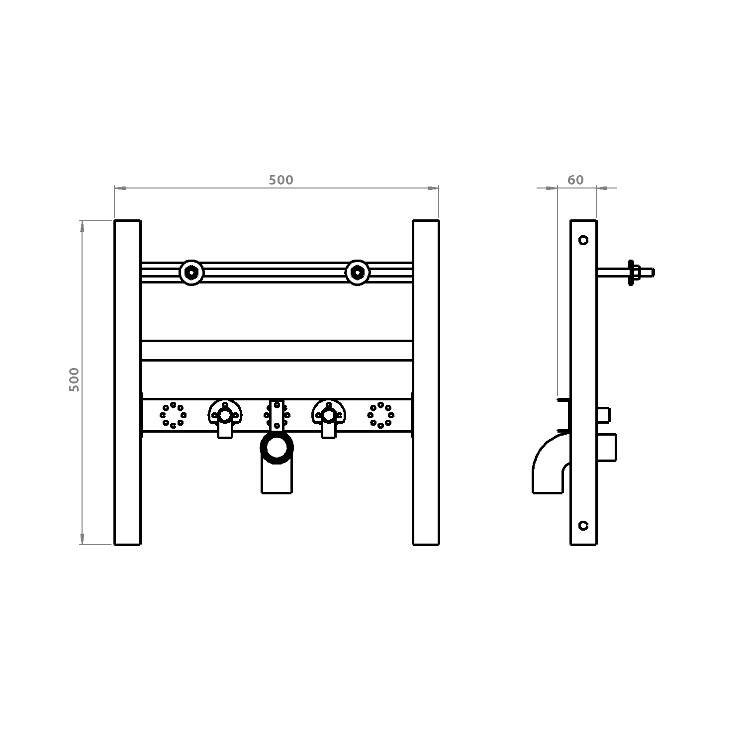 - Příčník pro připojení armatur výškově a hloubkově stavitelný