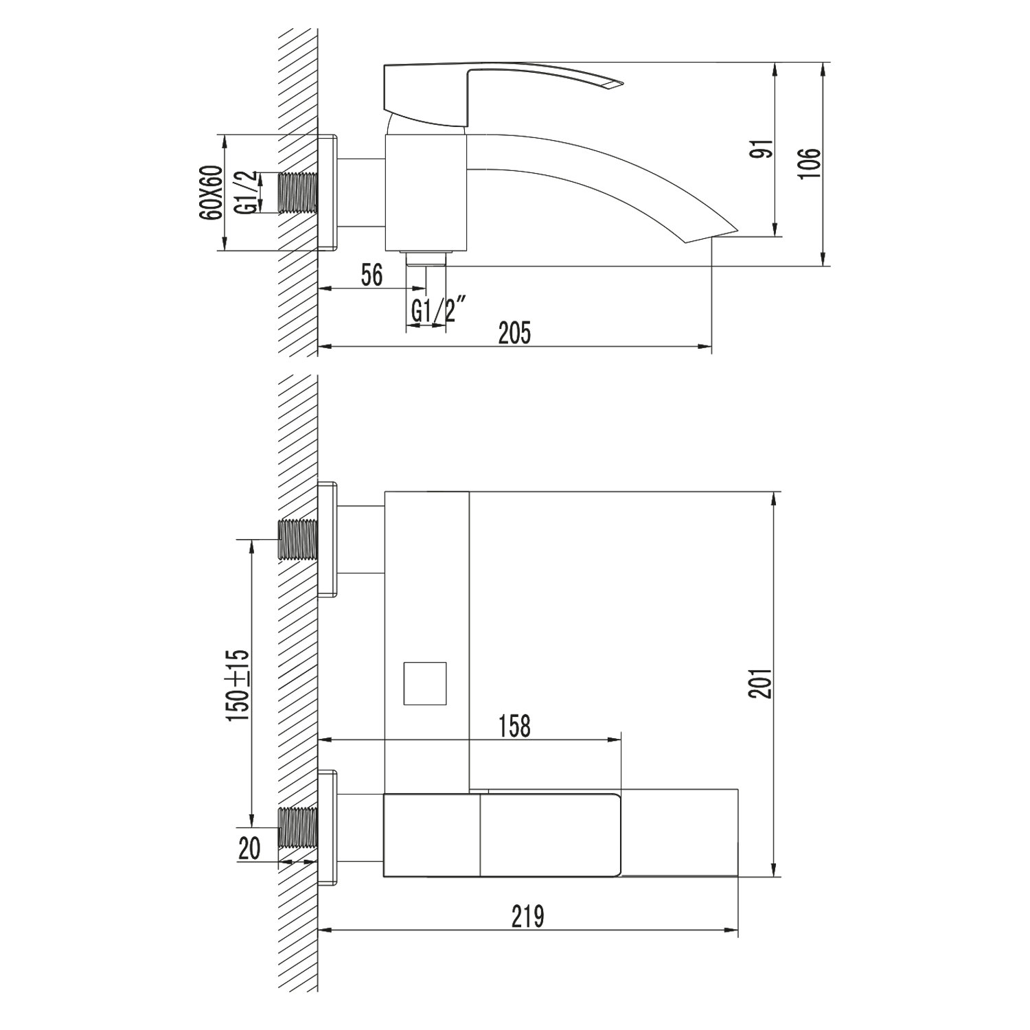 | Instalace: | Nástěnná 150 mm |