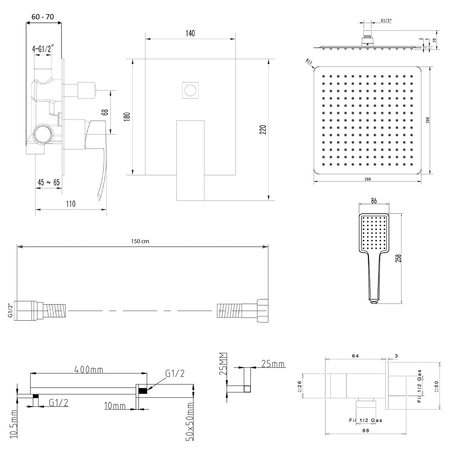 GINKO podomítkový sprchový set s pákovou baterií, 2 výstupy, černá mat