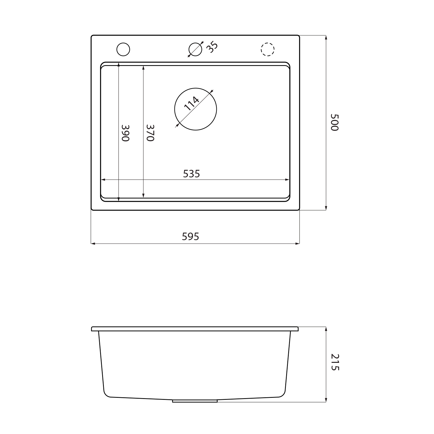Granitový vestavný dřez mono, 59,5x50cm, carbon