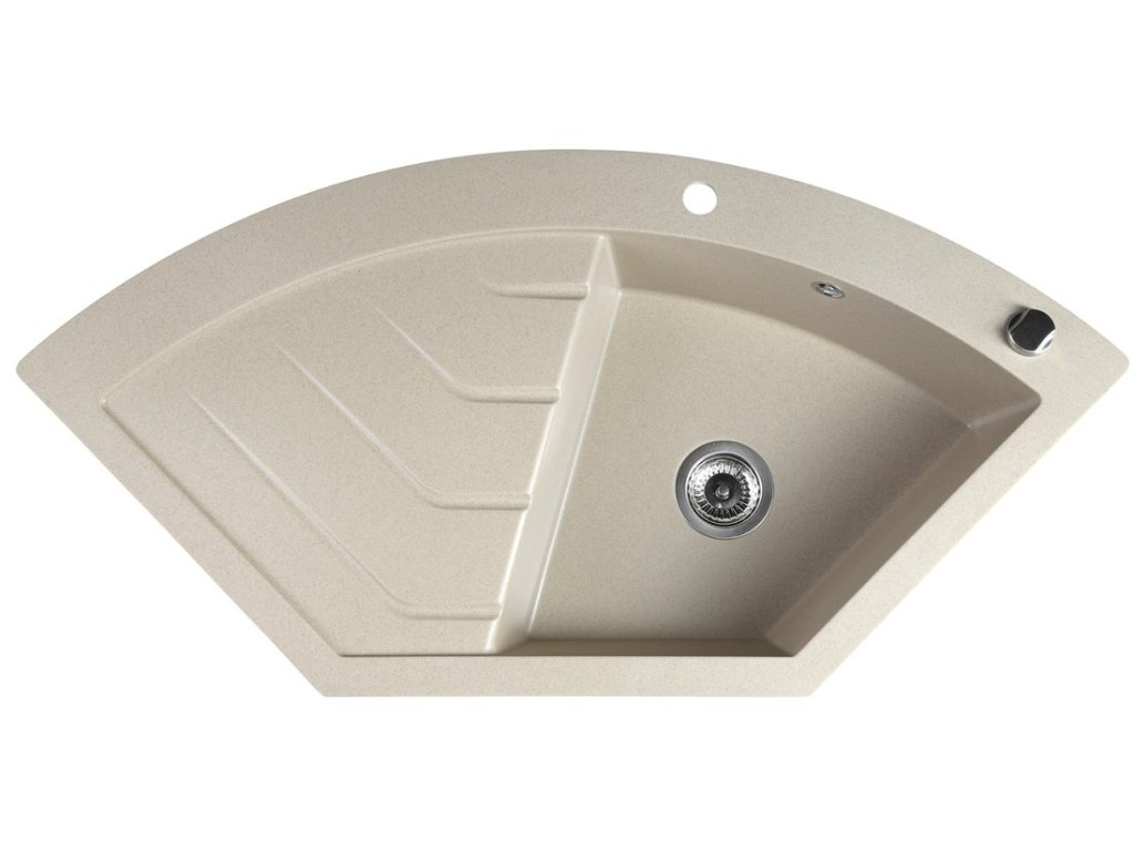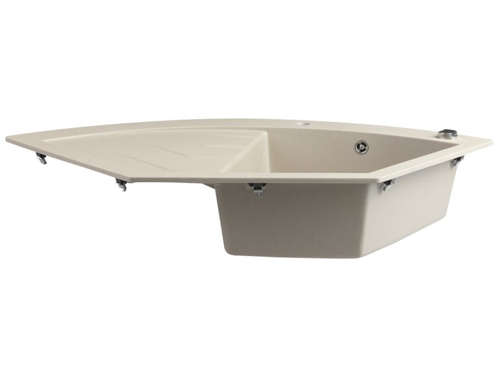 Granitový vestavný dřez rohový s odkapem, 114x57,5cm, béžová