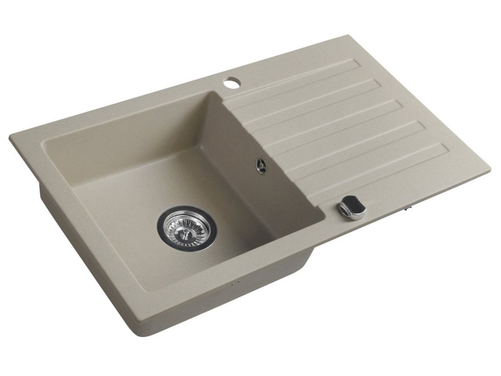 Granitový vestavný dřez s odkapem, 77x44cm, béžová