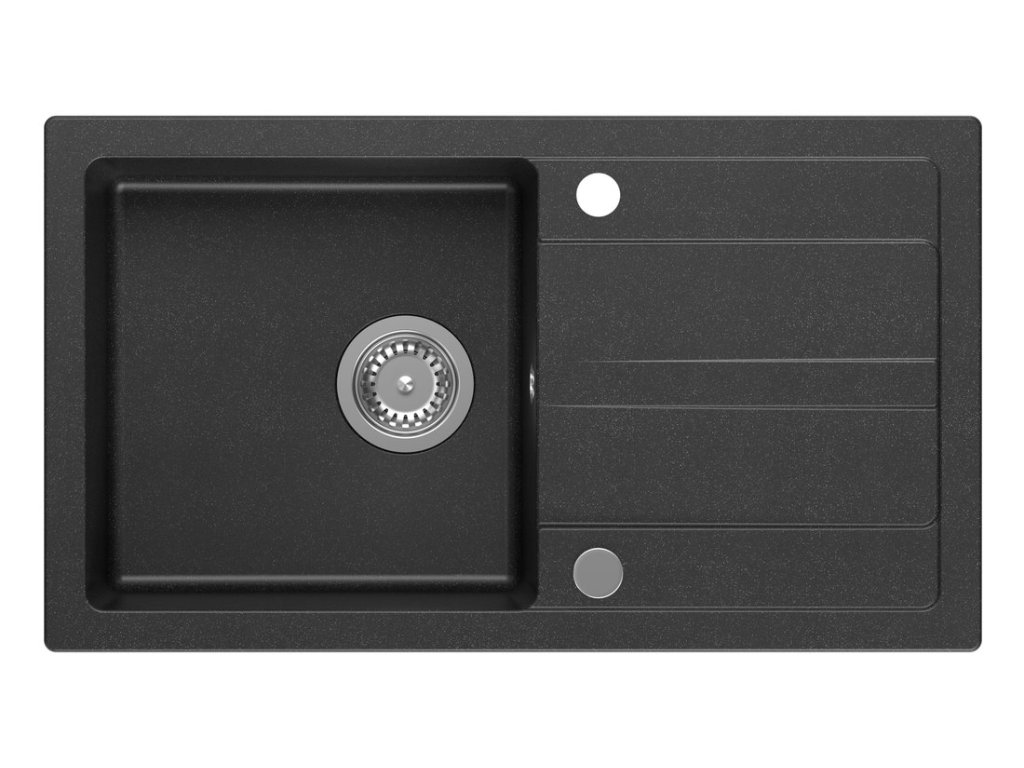 Granitový vestavný dřez s odkapem, 77x44cm, černá