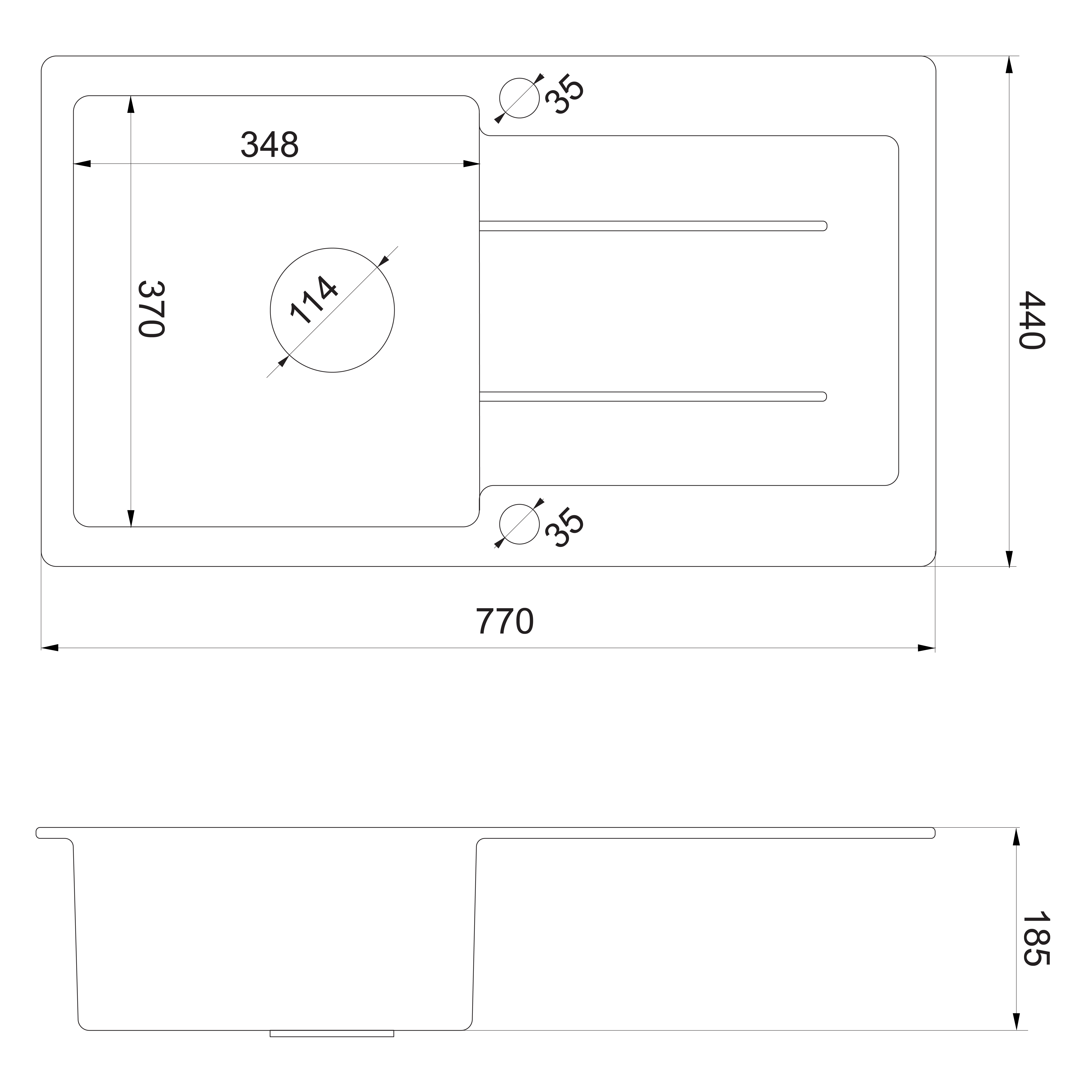 Granitový vestavný dřez s odkapem, 77x44cm, černá