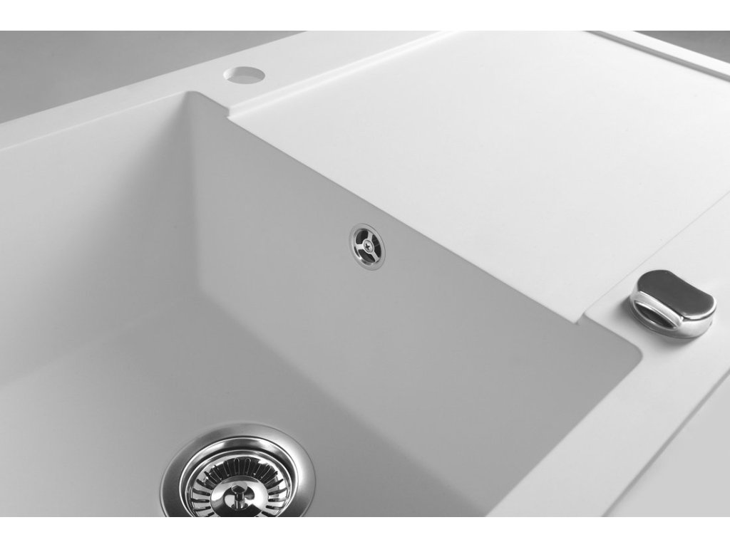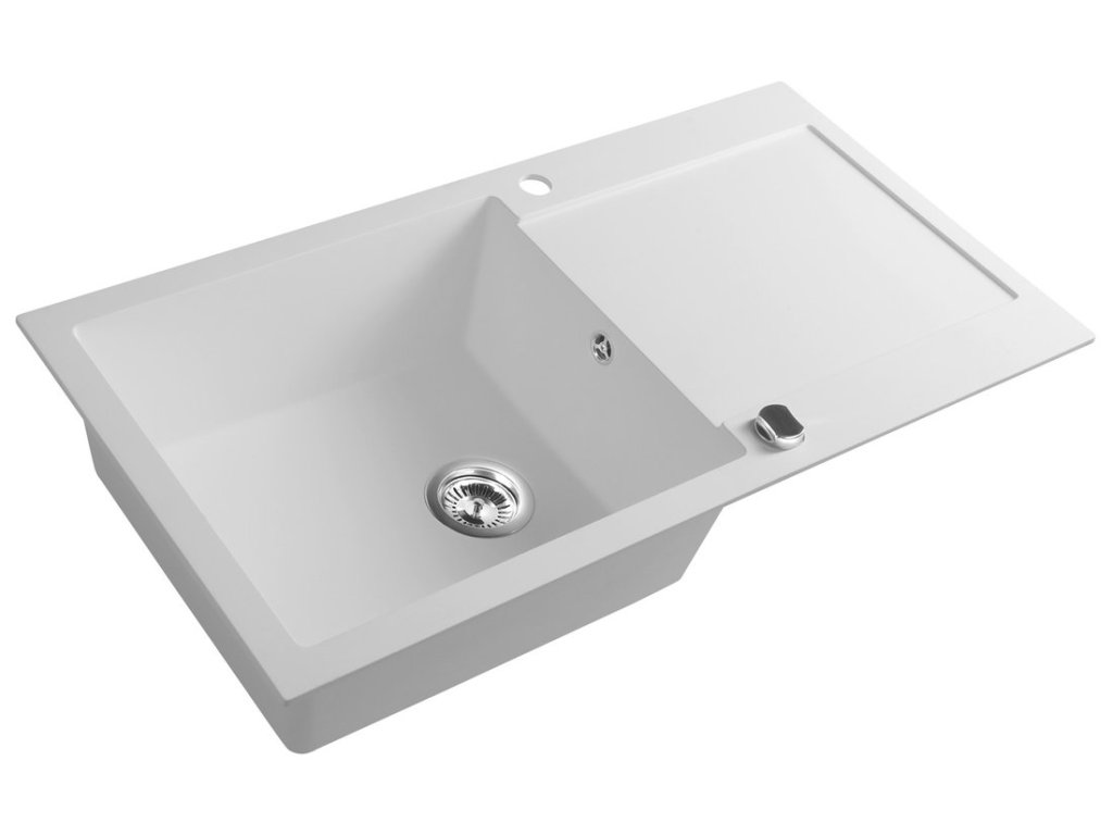 Granitový vestavný dřez s odkapem, 97x50cm, bílá