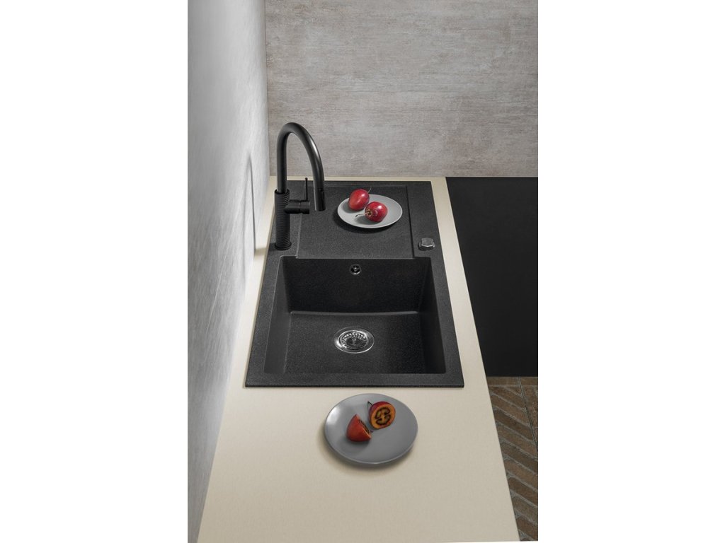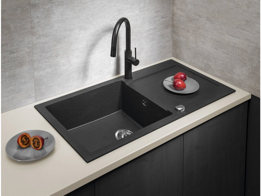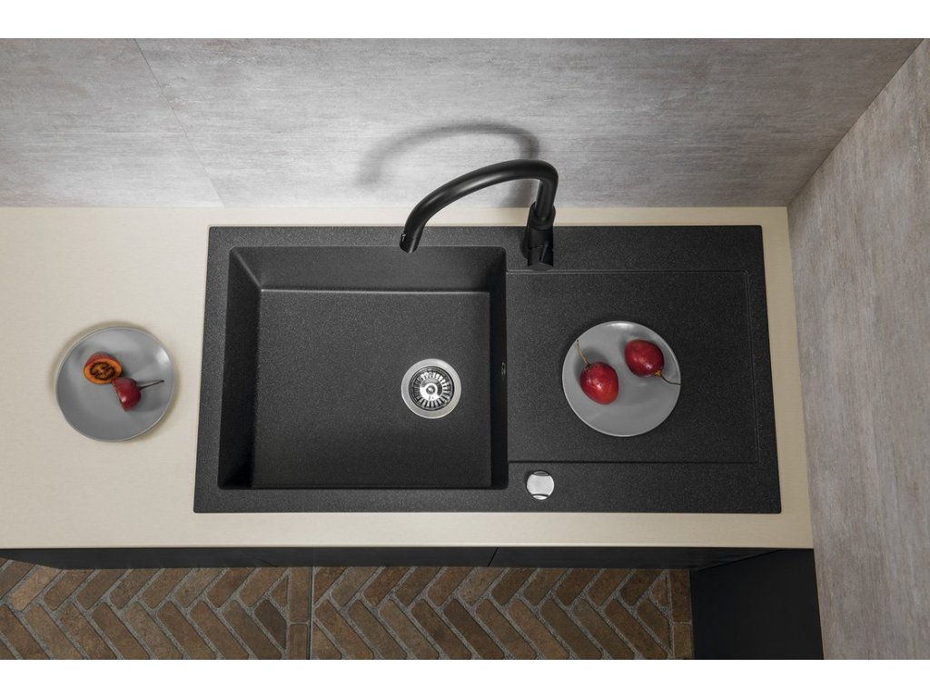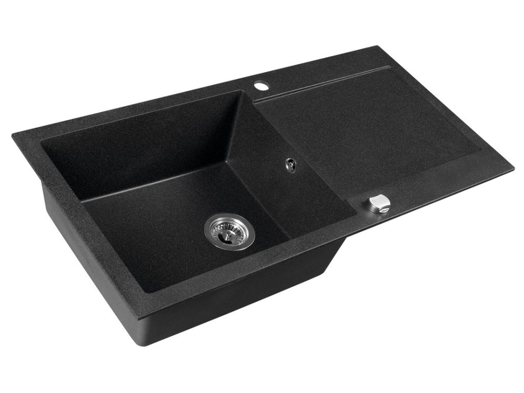 Granitový vestavný dřez s odkapem, 97x50cm, černá