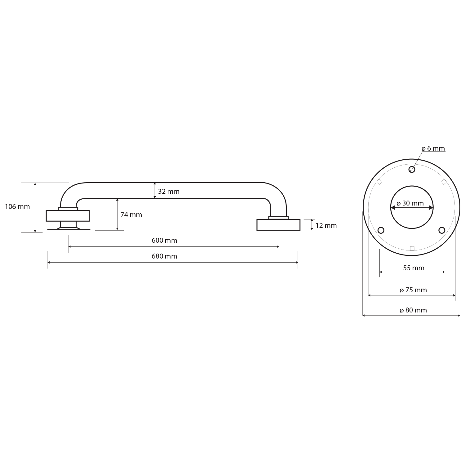 HANDICAP madlo rovné 600mm, černá mat
