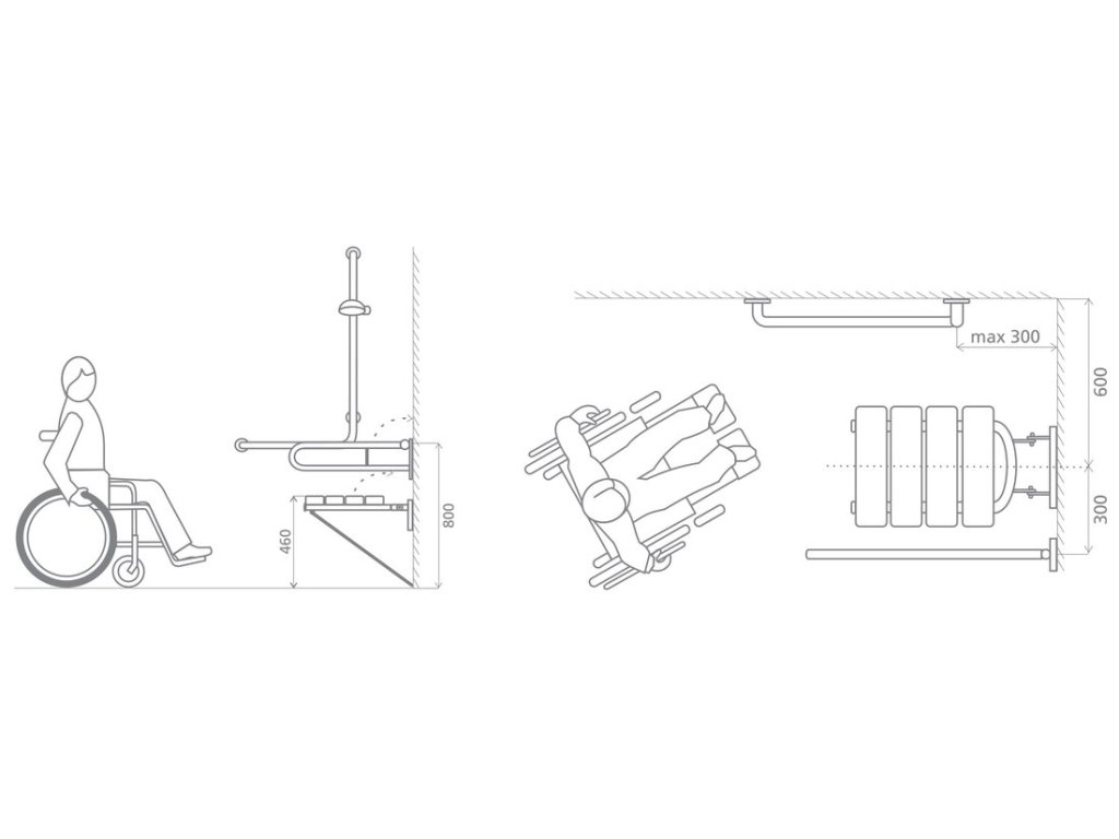 HANDICAP nástěnné madlo PRAVÉ 810x550mm, bílá
