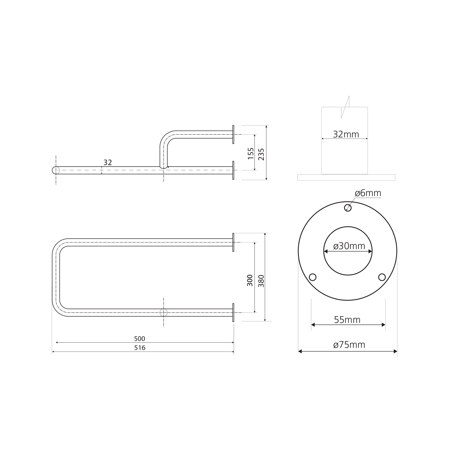 HANDICAP opěrné madlo PRAVÉ 500mm, nerez lesk