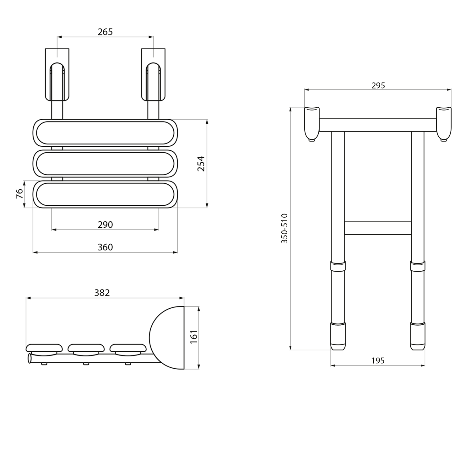 Nastavitelná výška podpěry 350-510 mm.