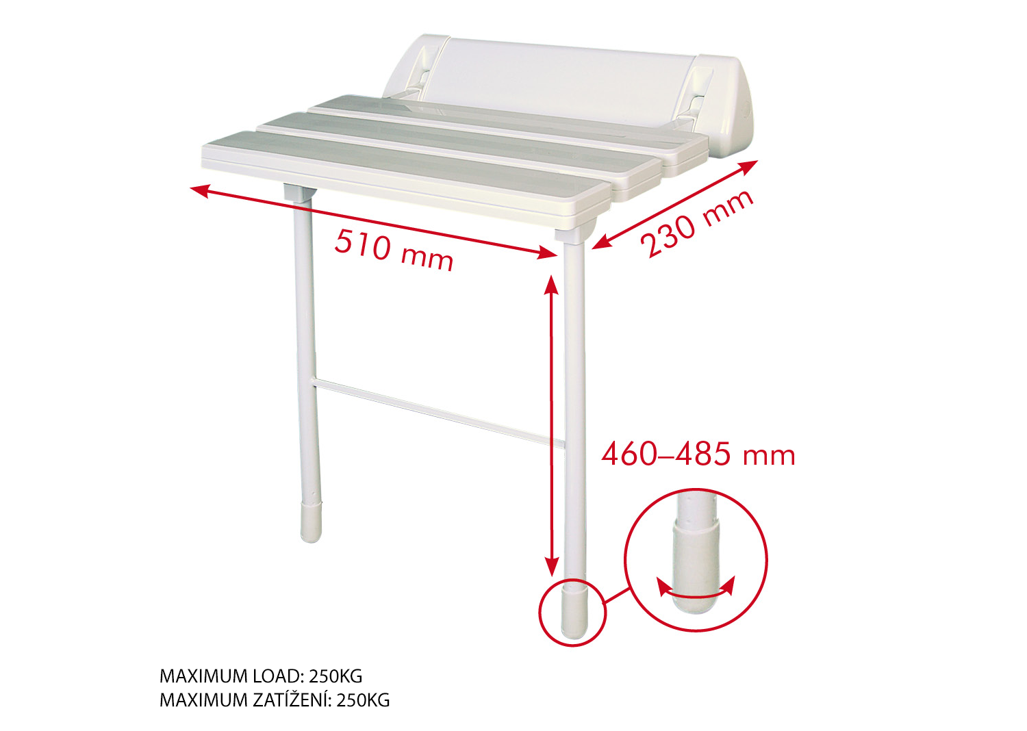 HANDICAP sklopné sedátko do sprchového koutu s podpěrou, 51x23cm, bílá