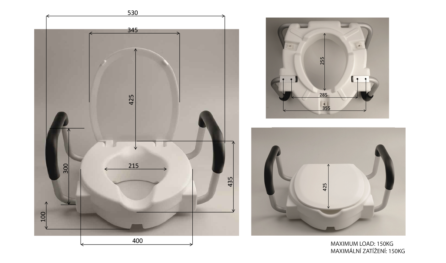 HANDICAP WC sedátko zvýšené 10cm, s madly, bílá