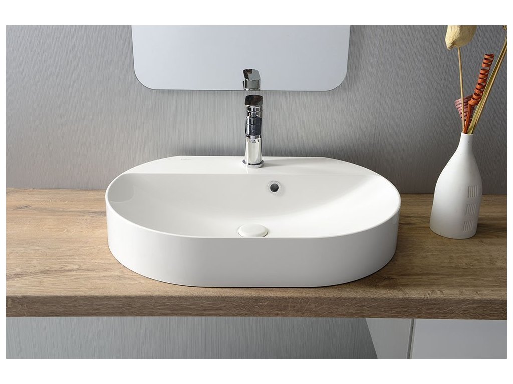 HELEN umyvadlo na desku, litý mramor, 63x43cm, bílá