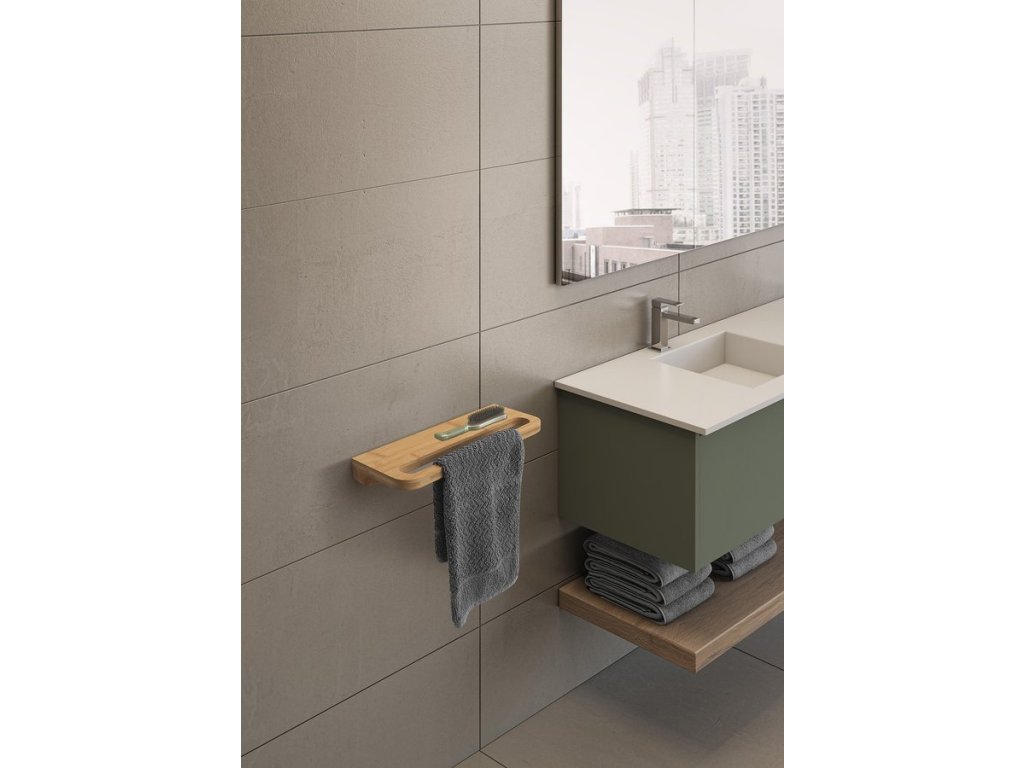 HIMALAYA polička s držákem ručníků 400x145mm, bambus