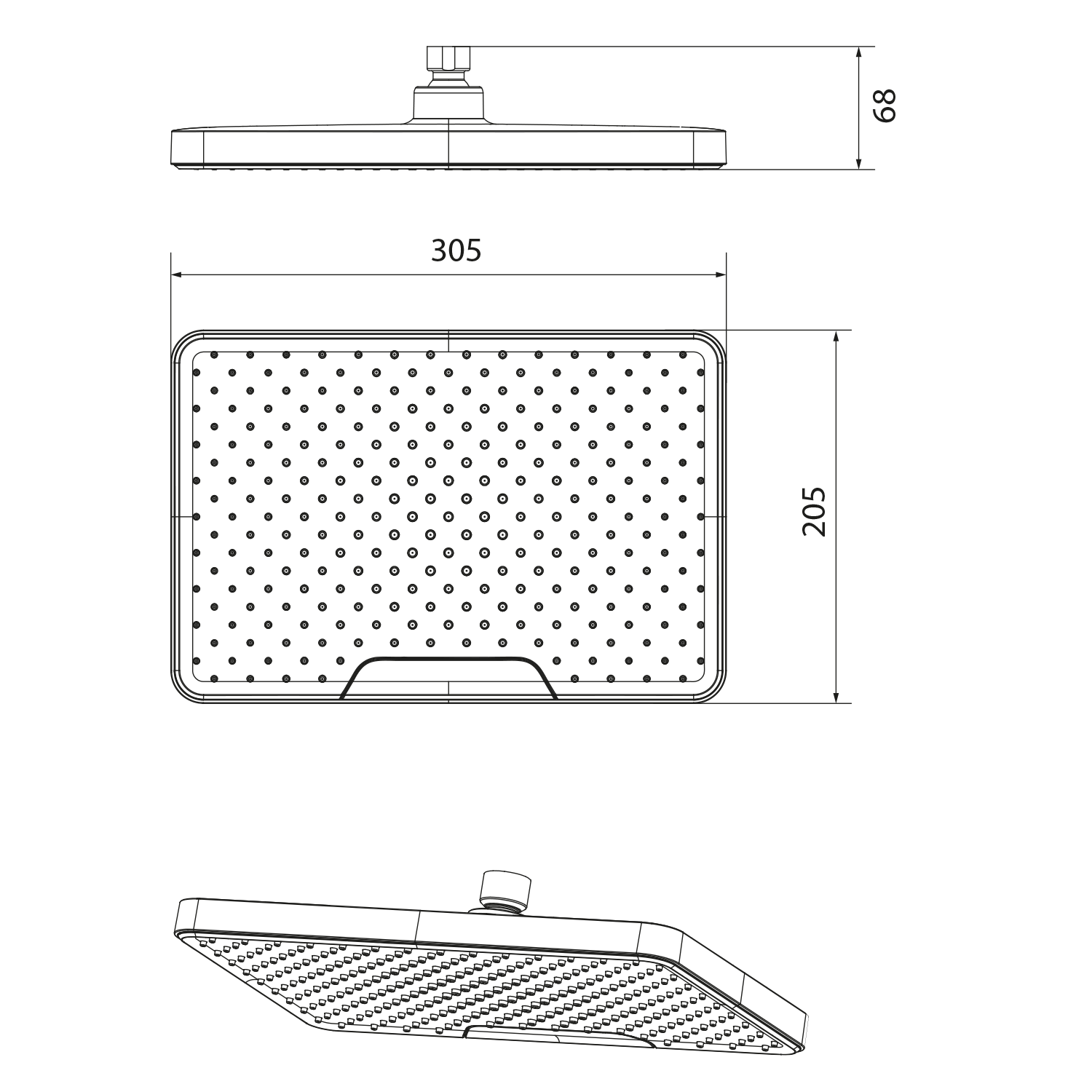 Hlavová sprcha, 205x305mm, silikon trysky, ABS/černá mat