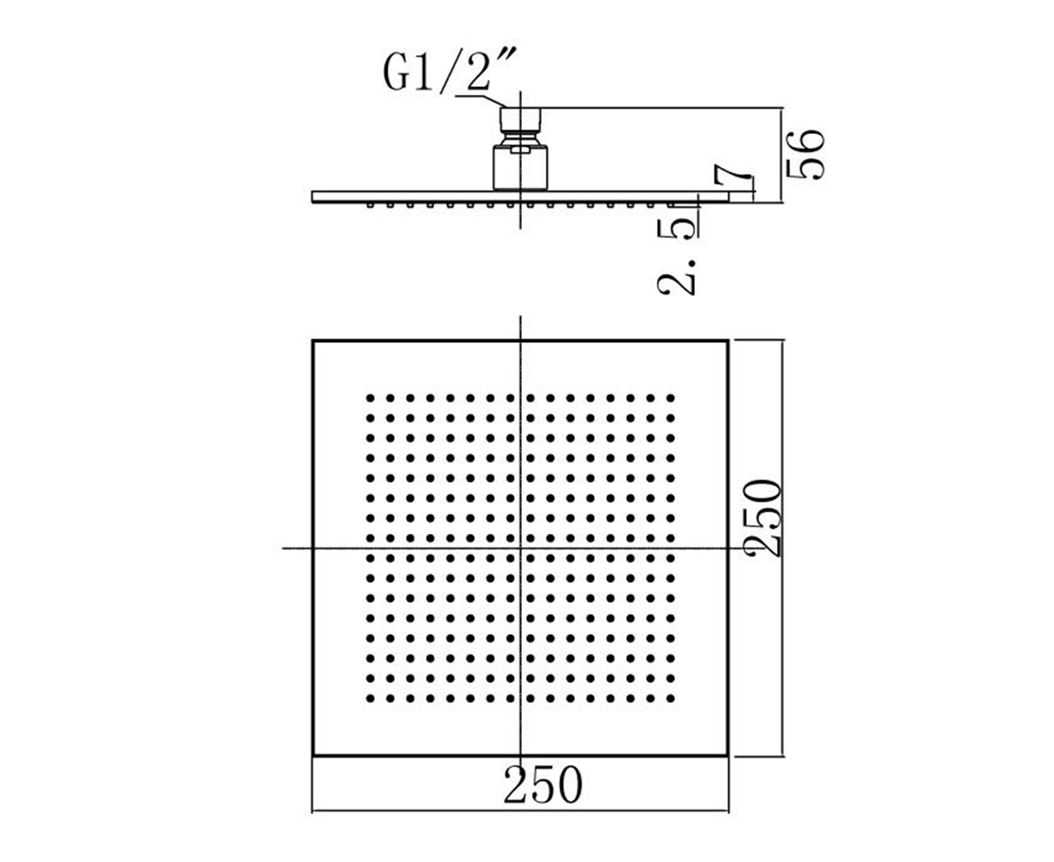 Hlavová sprcha, 250x250mm, chrom