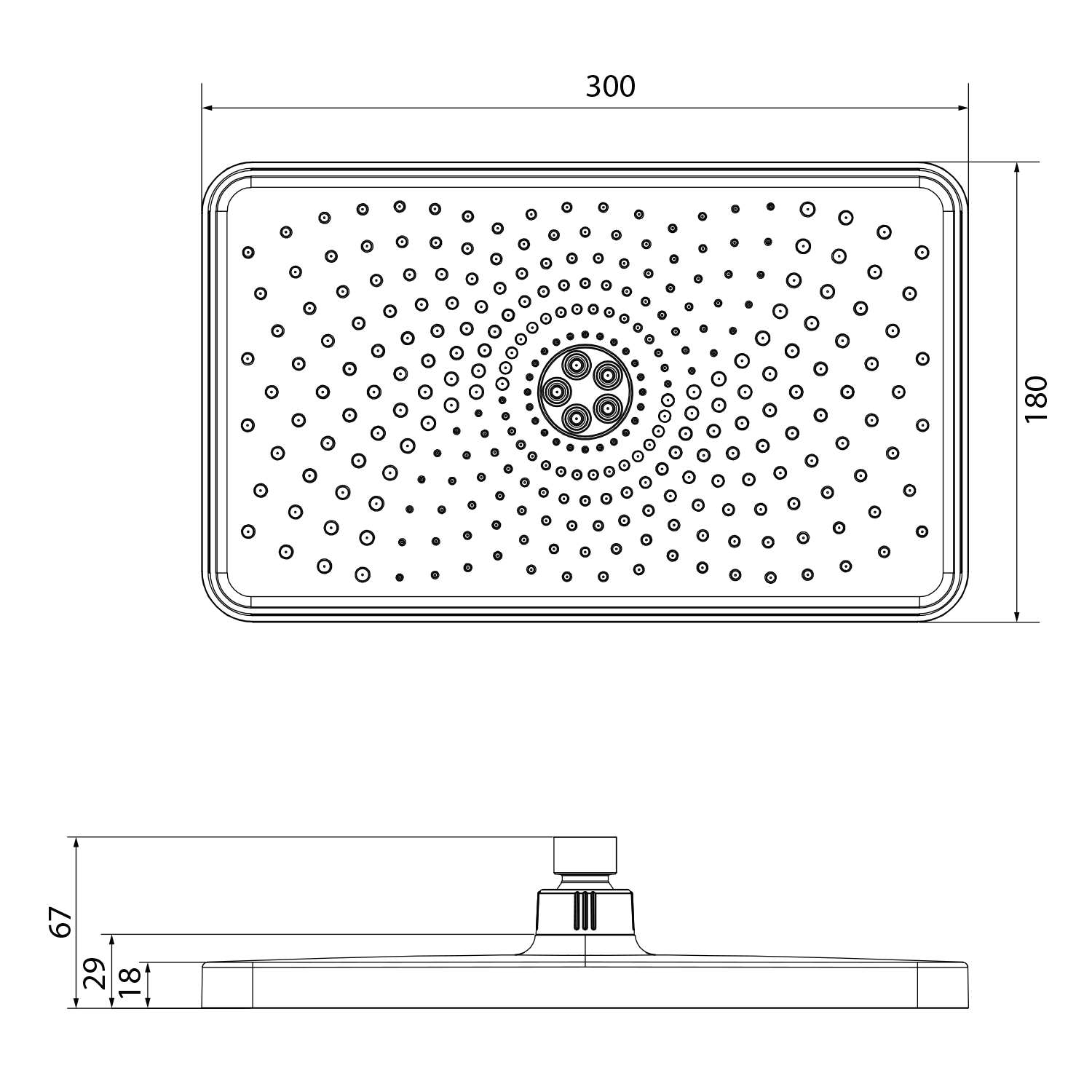 Hlavová sprcha, 300x180mm, silikon trysky, ABS/chrom/bílá