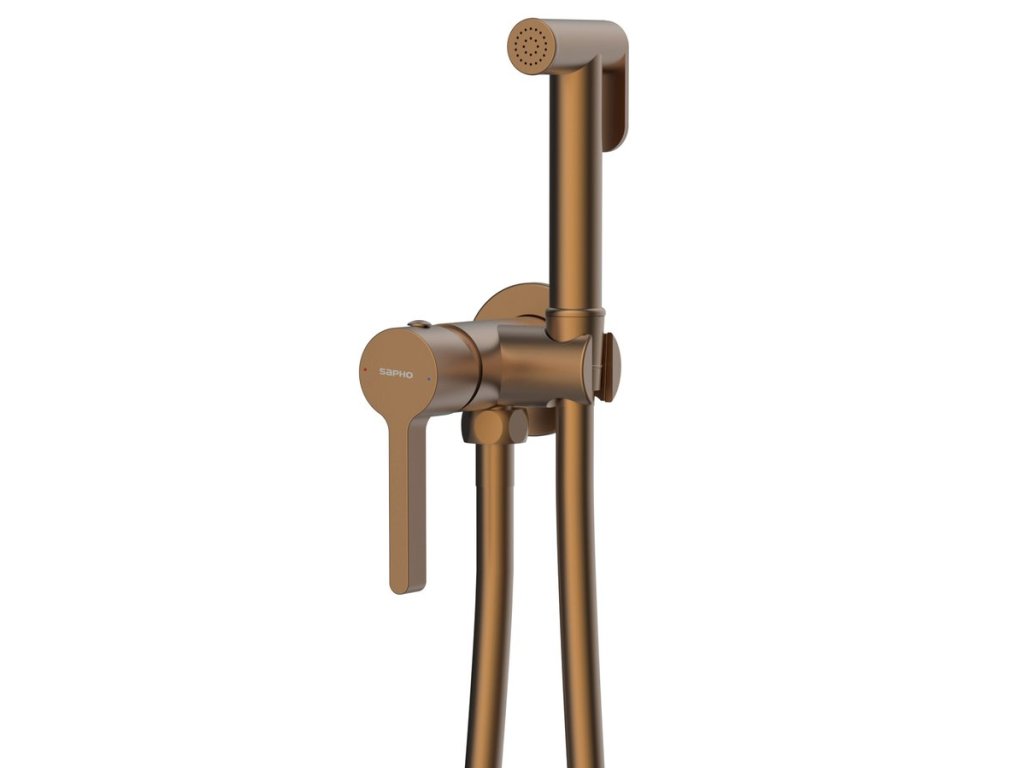 ICONIC podomítková bidetová baterie se Stop sprškou, kulatá, měď mat