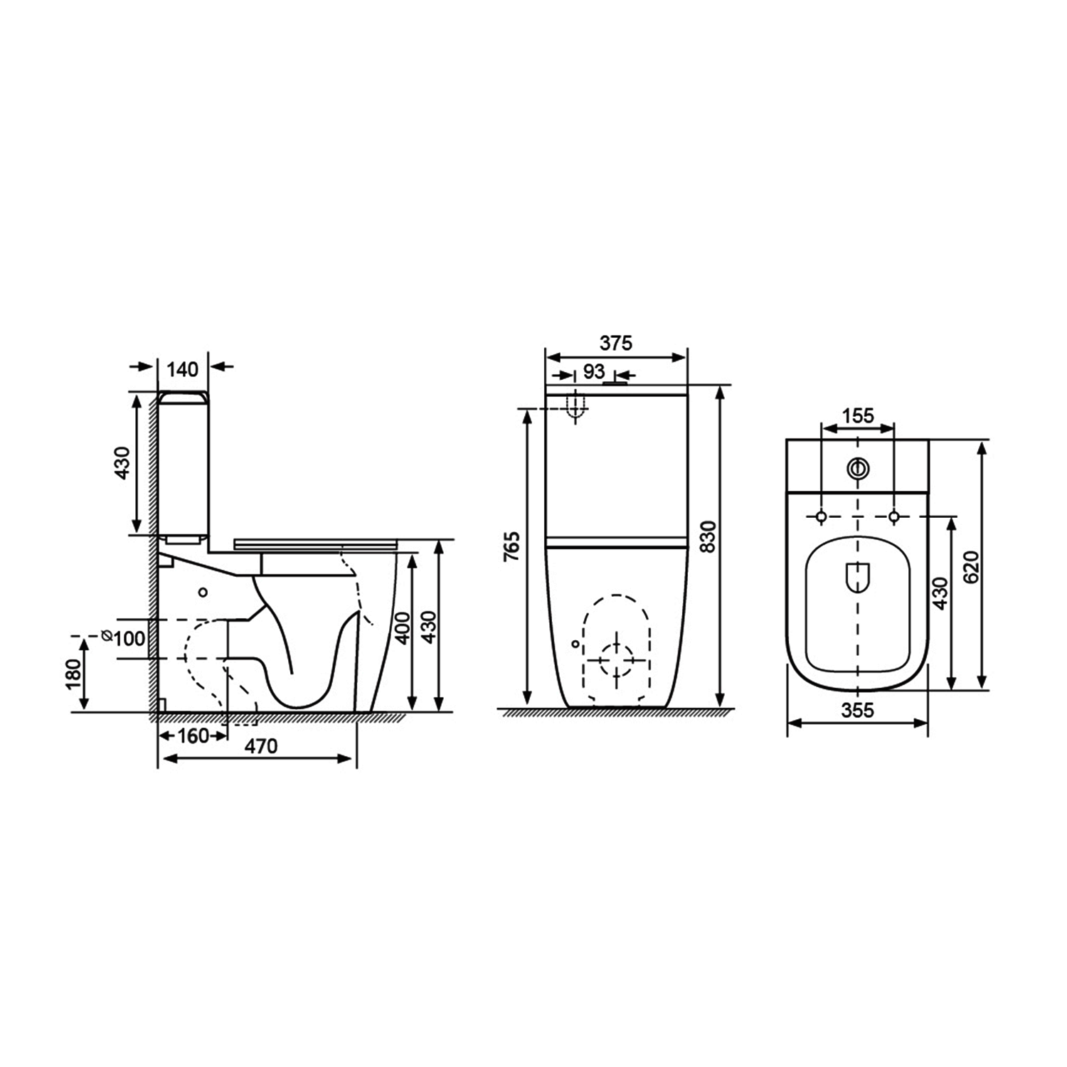 IMALA WC kombi, Vortex Rimless, spodní/zadní odpad, bílá