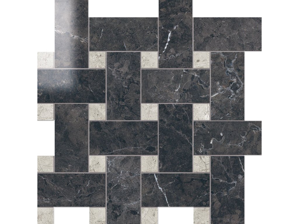 Imperial lappato Inteccio Lapp. 30x30 cm, na síti-5x5 cm, barva Nero Imperiale/London Grey