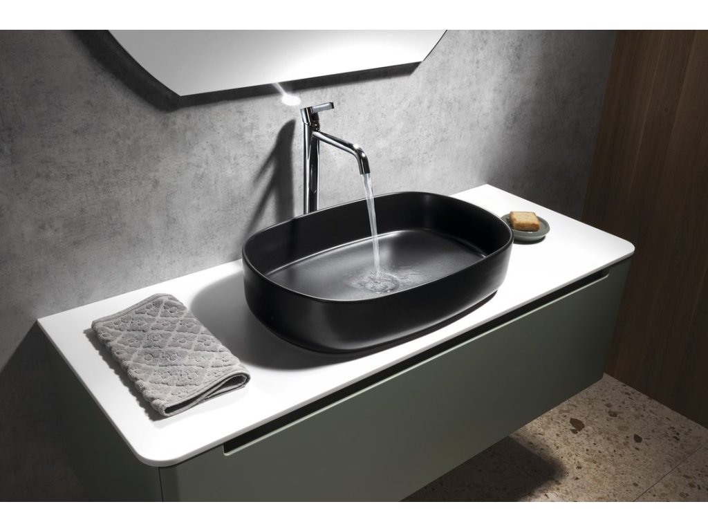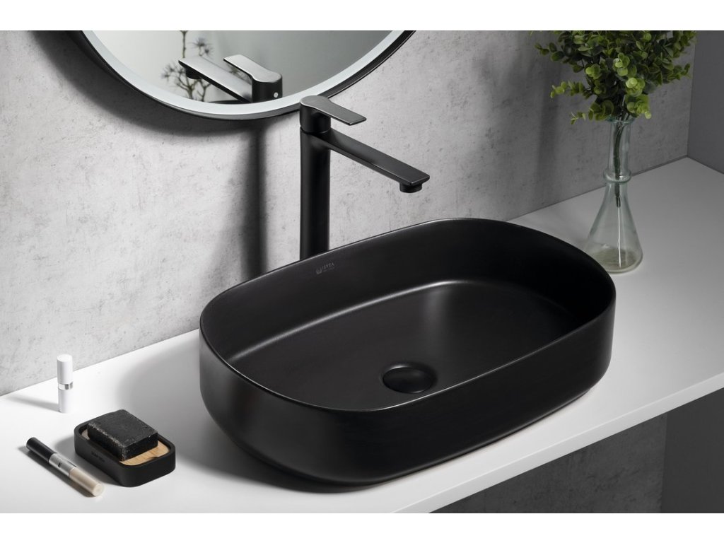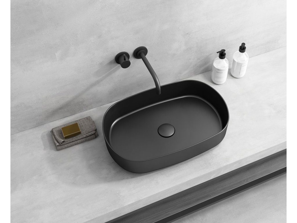 INFINITY OVAL keramické umyvadlo na desku, 55x36cm, černá mat