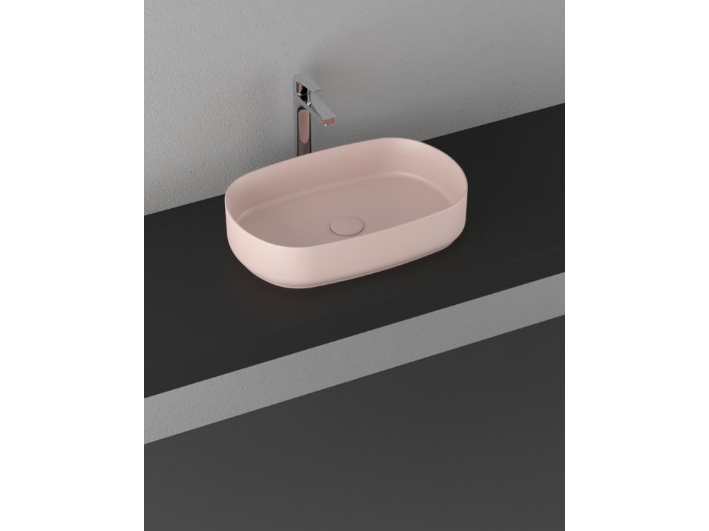 INFINITY OVAL keramické umyvadlo na desku, 55x36cm, růžová Salmon