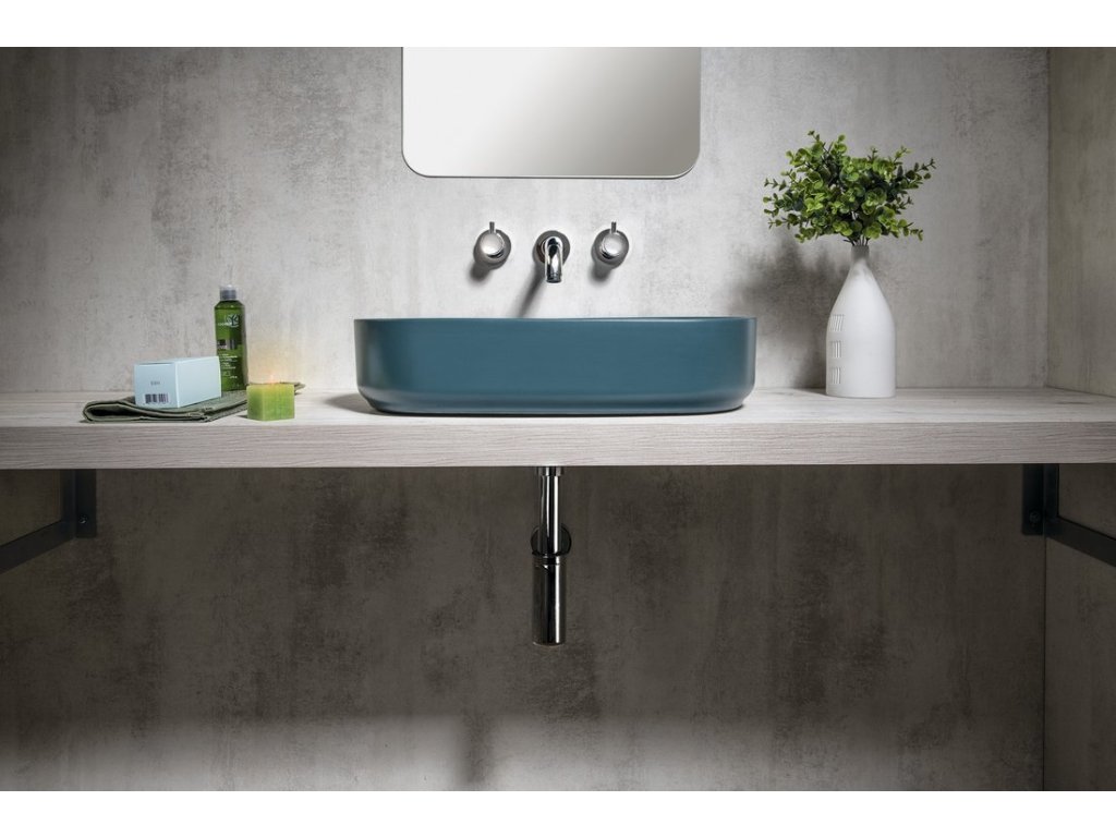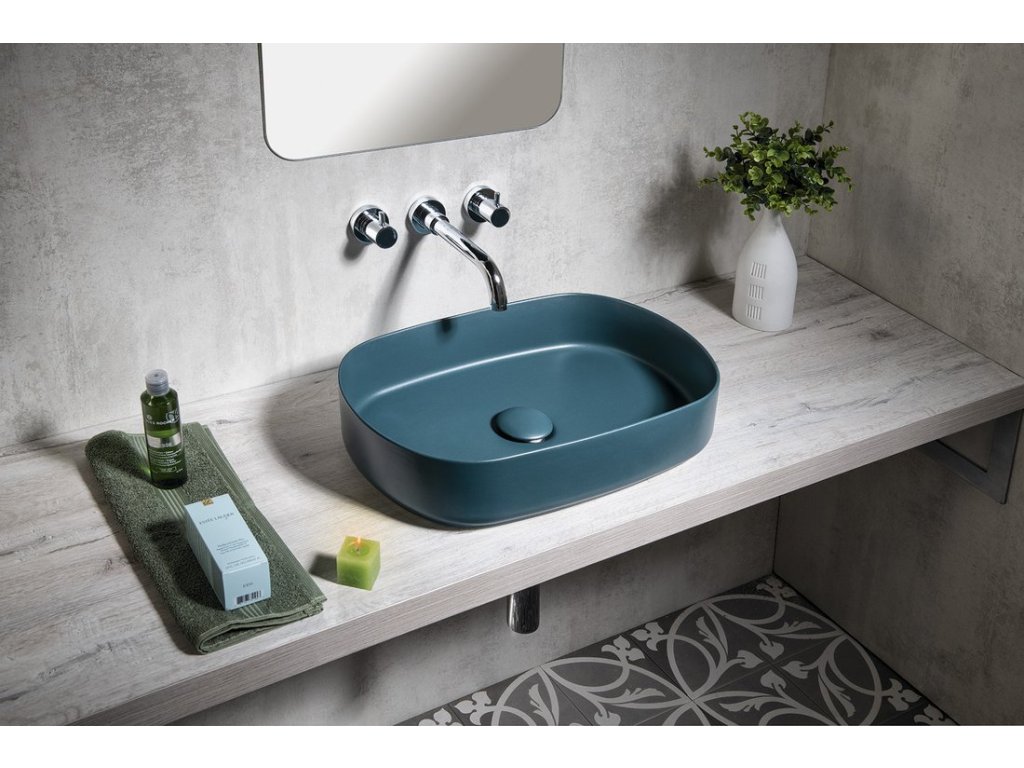 INFINITY OVAL keramické umyvadlo na desku, 55x36cm, zelená petrol