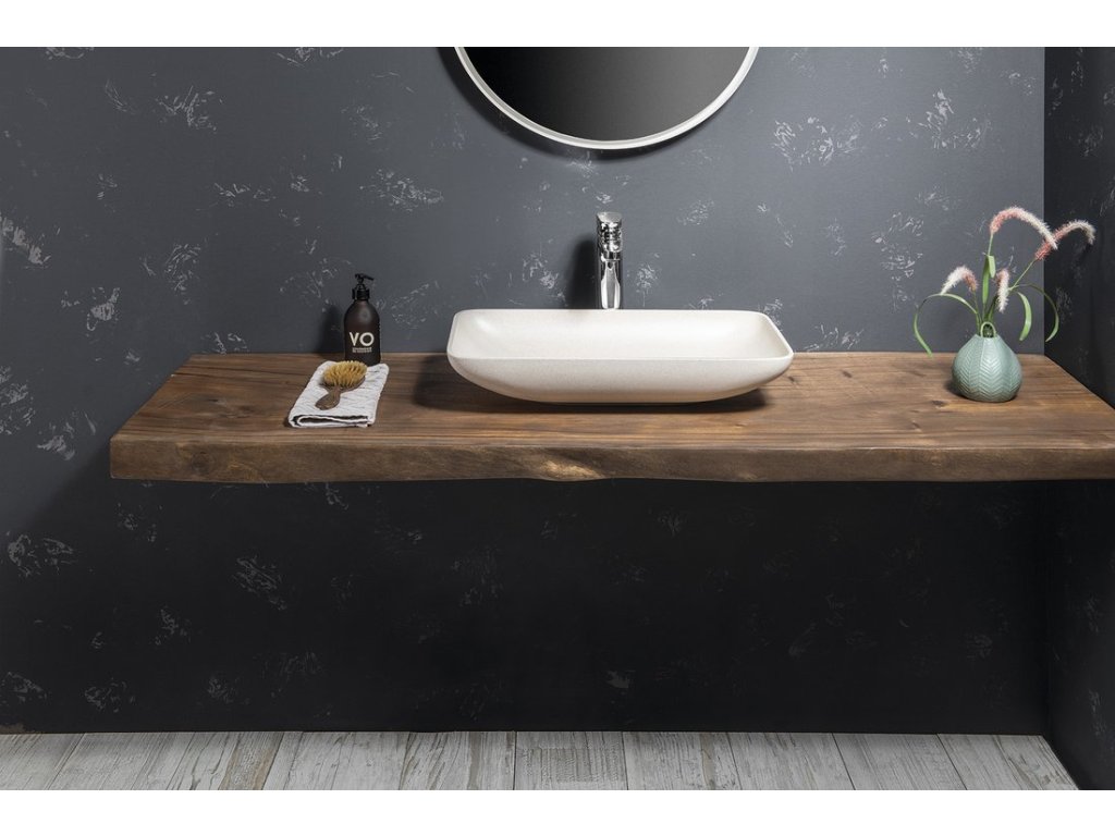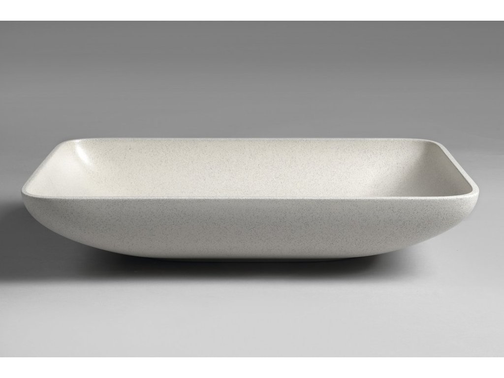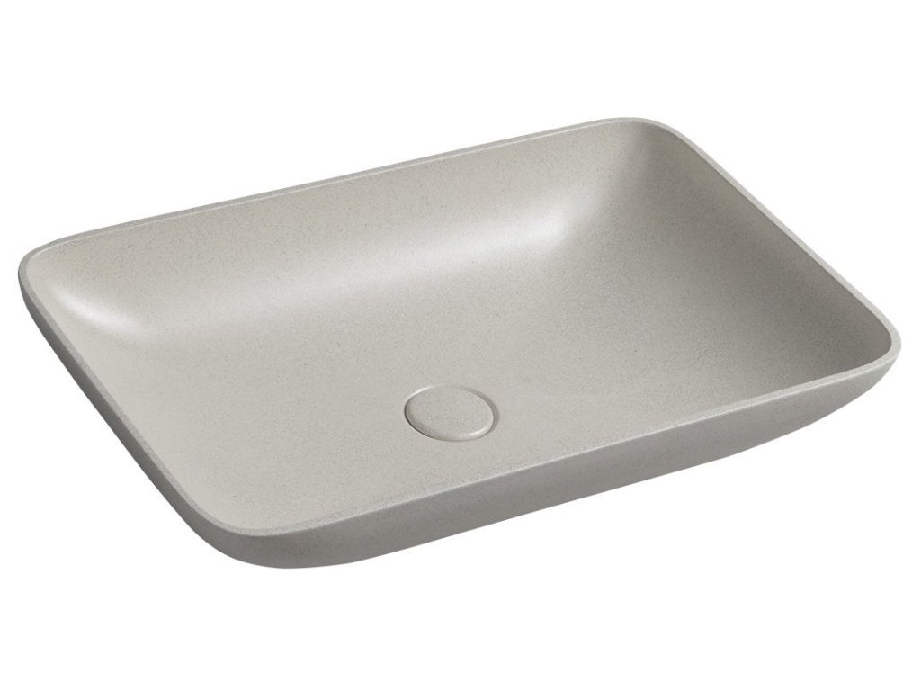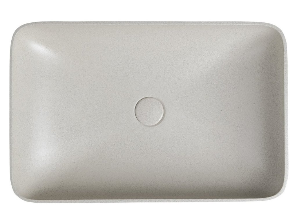 INFRANE betonové umyvadlo na desku, včetně výpusti, 57x37cm, bílý pískovec